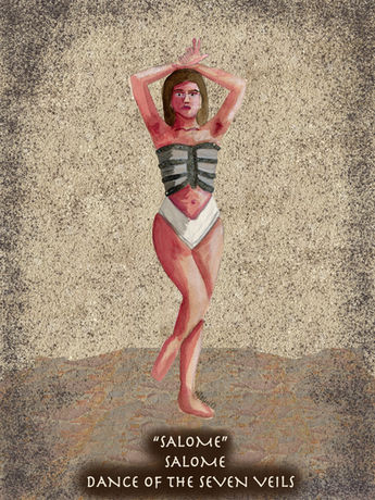 In my telling of Salome the focus is set on the relationship between Salome and John the Baptist and what it means for their collective downfall. Salome is seen as unearthly and ethereal in the eyes of those around her, they are drawn to her addictive presence. Yet any male who rotates around her eventually comes to an end. John the Baptist refuses to look upon Salome or acknowledge her strange beauty; leading him to also be perceived as a symbol of pale purity in Salome's eyes.